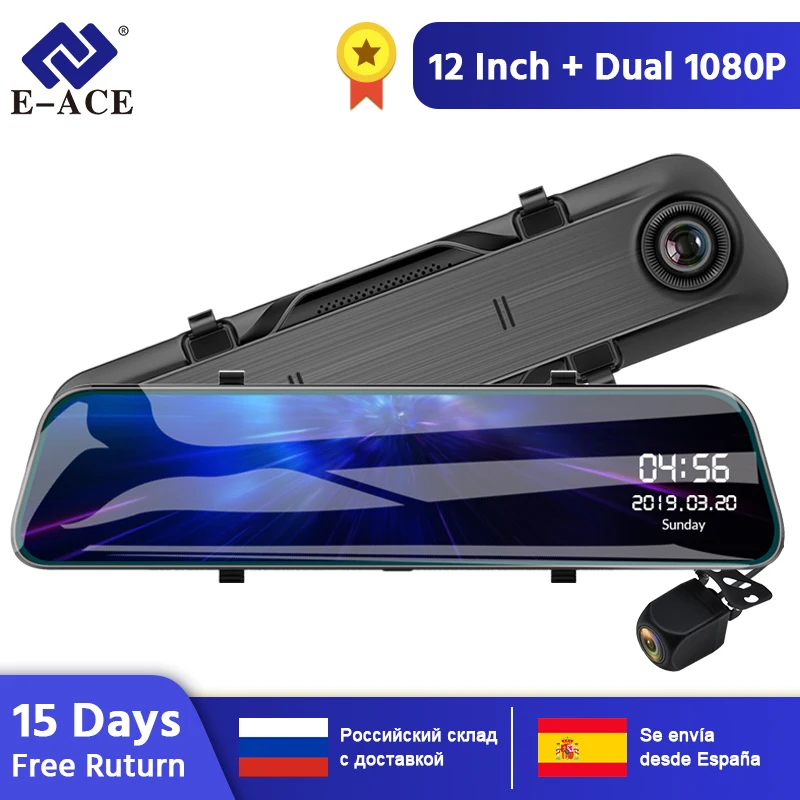SALE E-ACE A39 Car Dvr Full HD 1080P Stream Media RearView Mirror 12 Inch DashCam Night Vision Car Camer